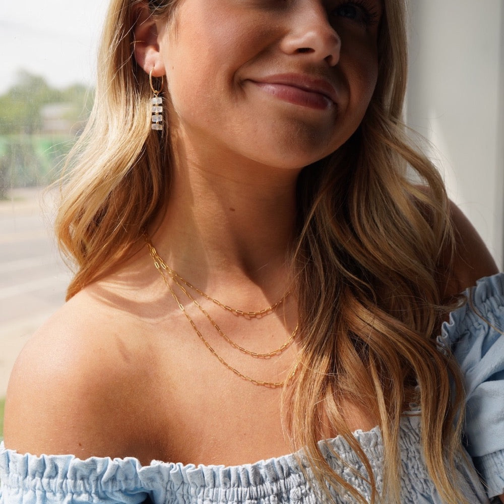 The possibilities for layering are endless with this modern and delicate paperclip chain! The Cosette Chain can be worn alone for a refined style or layered up giving you the ability to create a uniquely you stack. Try pairing this cutie with our Tahoe Necklace for a double Cosette Chain look!